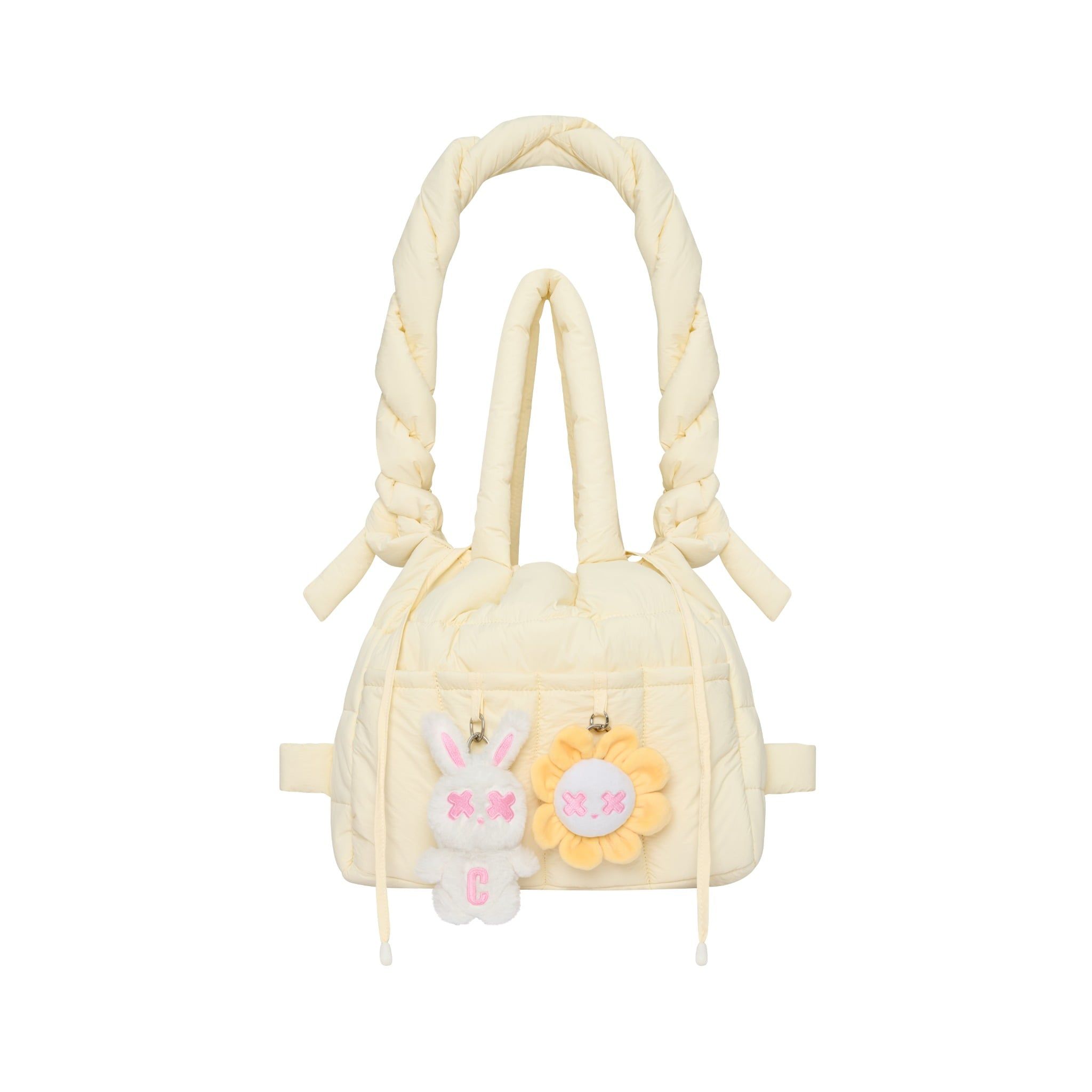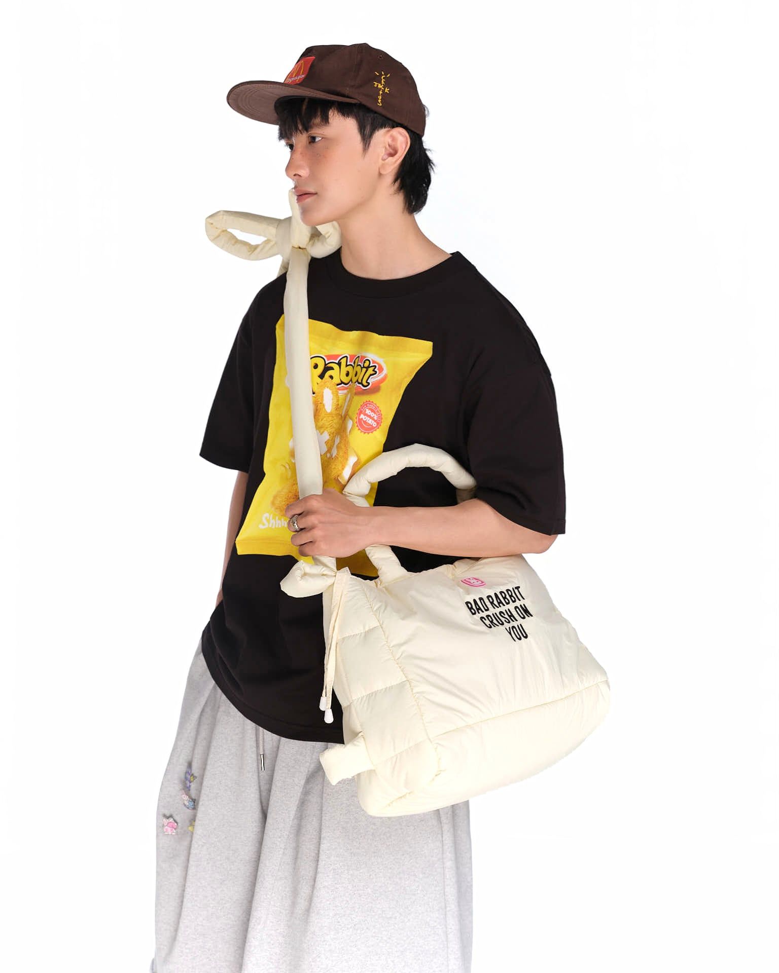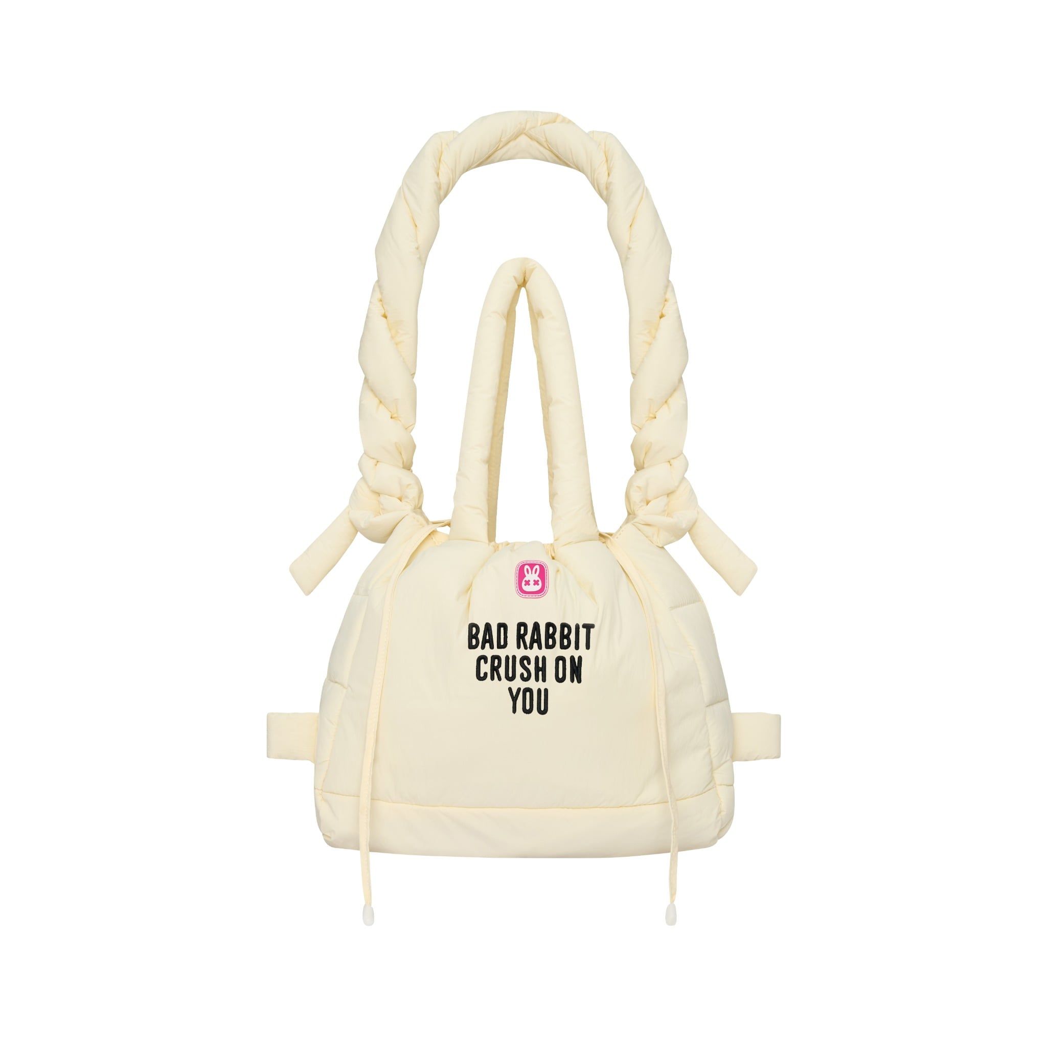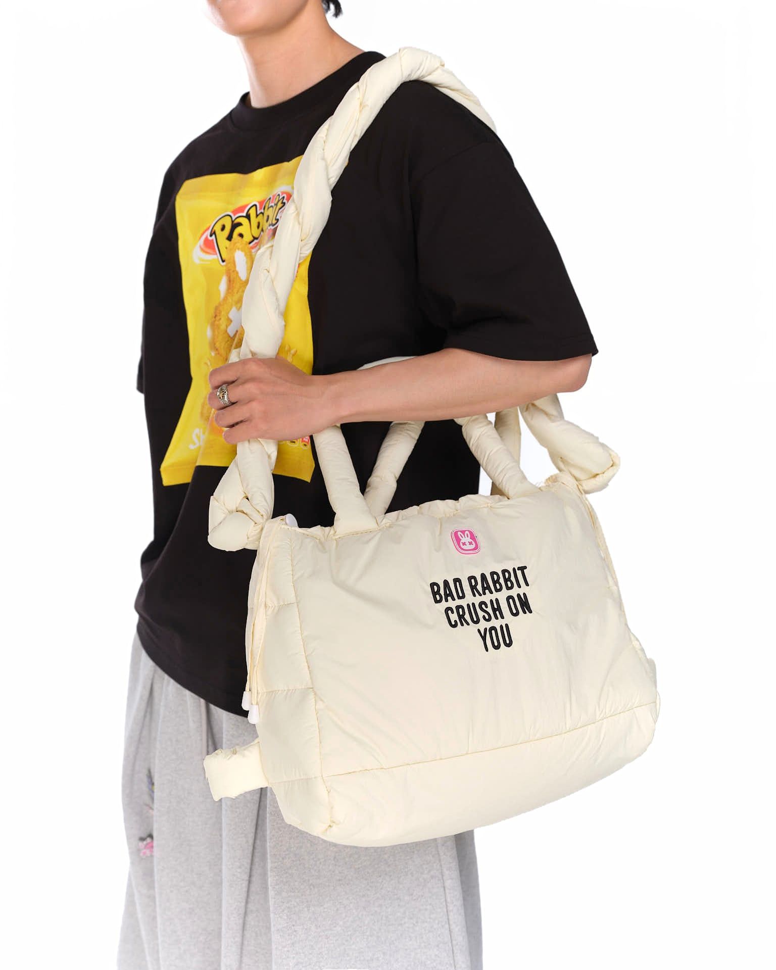 Chiếc túi “CRUSH ON YOU RABBIT BAG” – Chiếc túi gây ấn tượng từ cái nhìn đầu tiên 🖤 Chất liệu Vải dù chần bông cao cấp, mềm mại nhưng chắc chắn Chống nước nhẹ, thích hợp cho cả thời tiết ẩm ướt. Bề mặt mịn, dễ vệ sinh Thiết kế nổi bật Dây đeo biến hóa đa năng: Dây bản to được thắt nút độc đáo, có thể linh hoạt điều chỉnh để tạo dáng túi riêng biệt: đeo vai, balo hoặc đeo chéo.